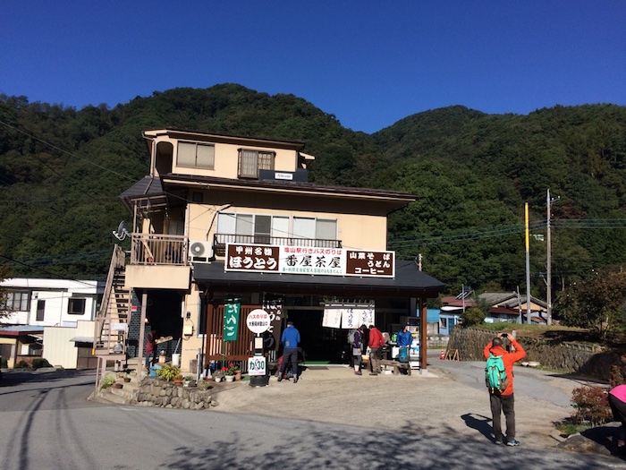 12:30、上日川峠にあるロッヂ長兵衛に到着。ここから甲斐大和駅までバスが出ているのだが、料金1,000円。行きの300円と比べると高く感じるが、それだけ山深い位置にあり、標高も高い。